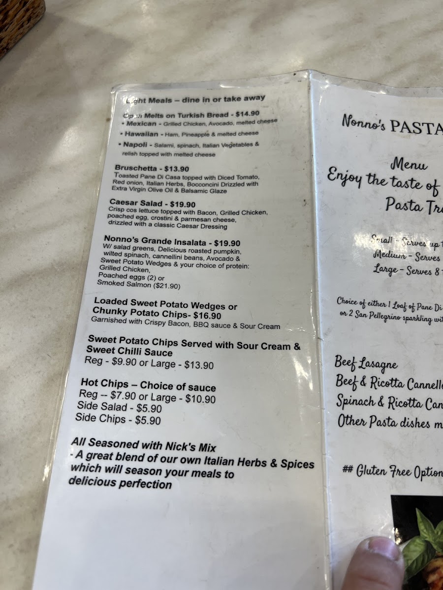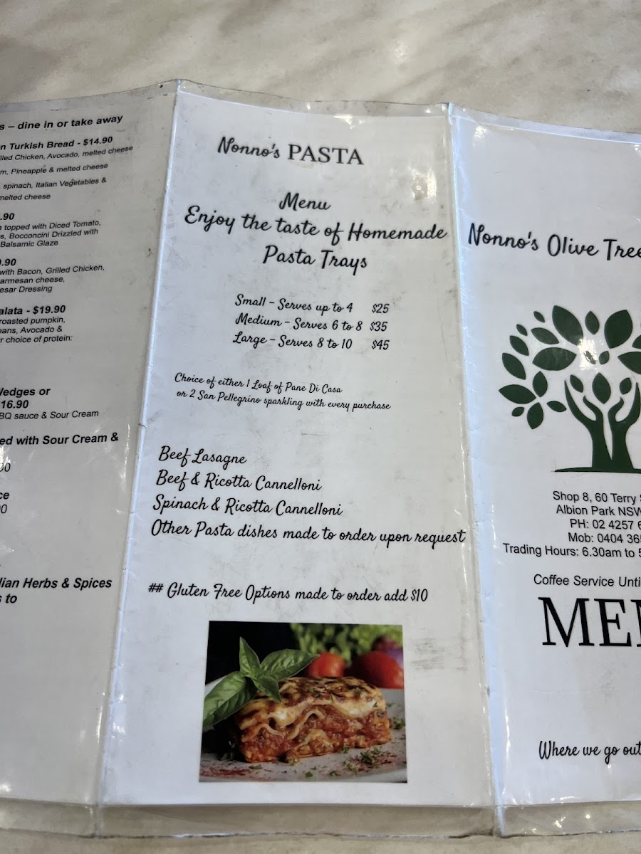 Nonno’s Olive Tree Cafe’ Menu